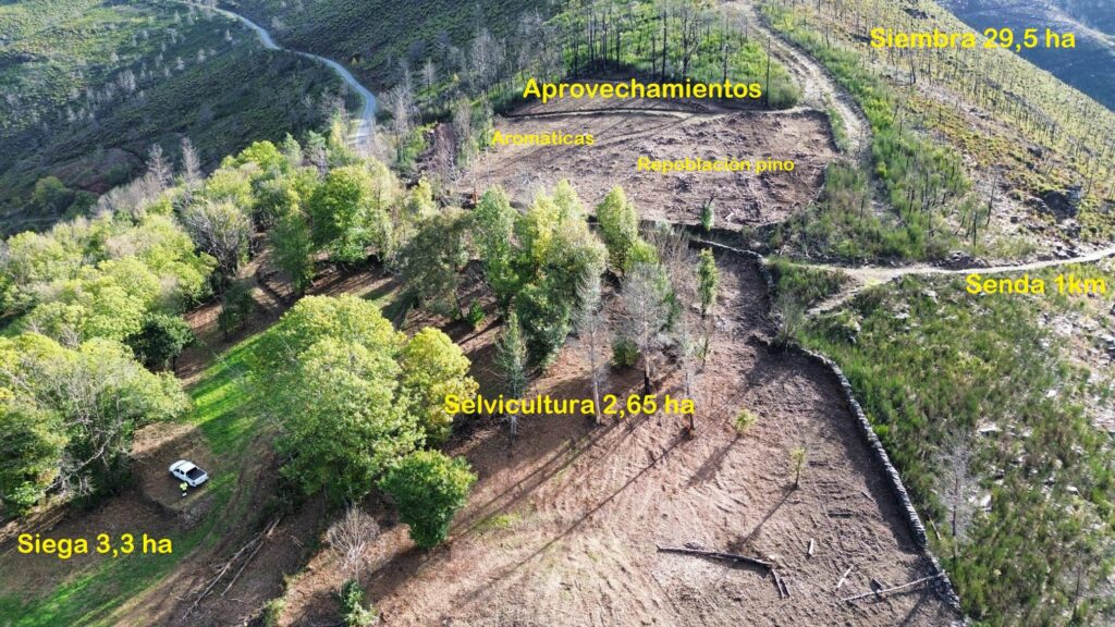 En el monte de Vilar las actuaciones se han centrado en la restauración del monte tras un incendio, reforzando su capacidad de recuperación y reduciendo riesgos futuros.
